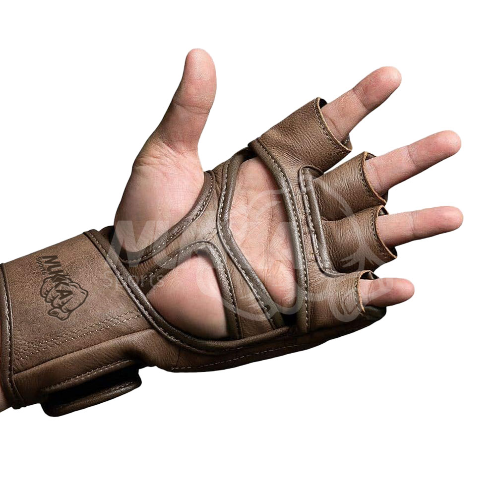 The open-finger design allows a strong grip for grappling and ground techniques, while the high-density padding protects the knuckles during powerful strikes. The genuine leather construction enhances durability and gives a premium professional finish.