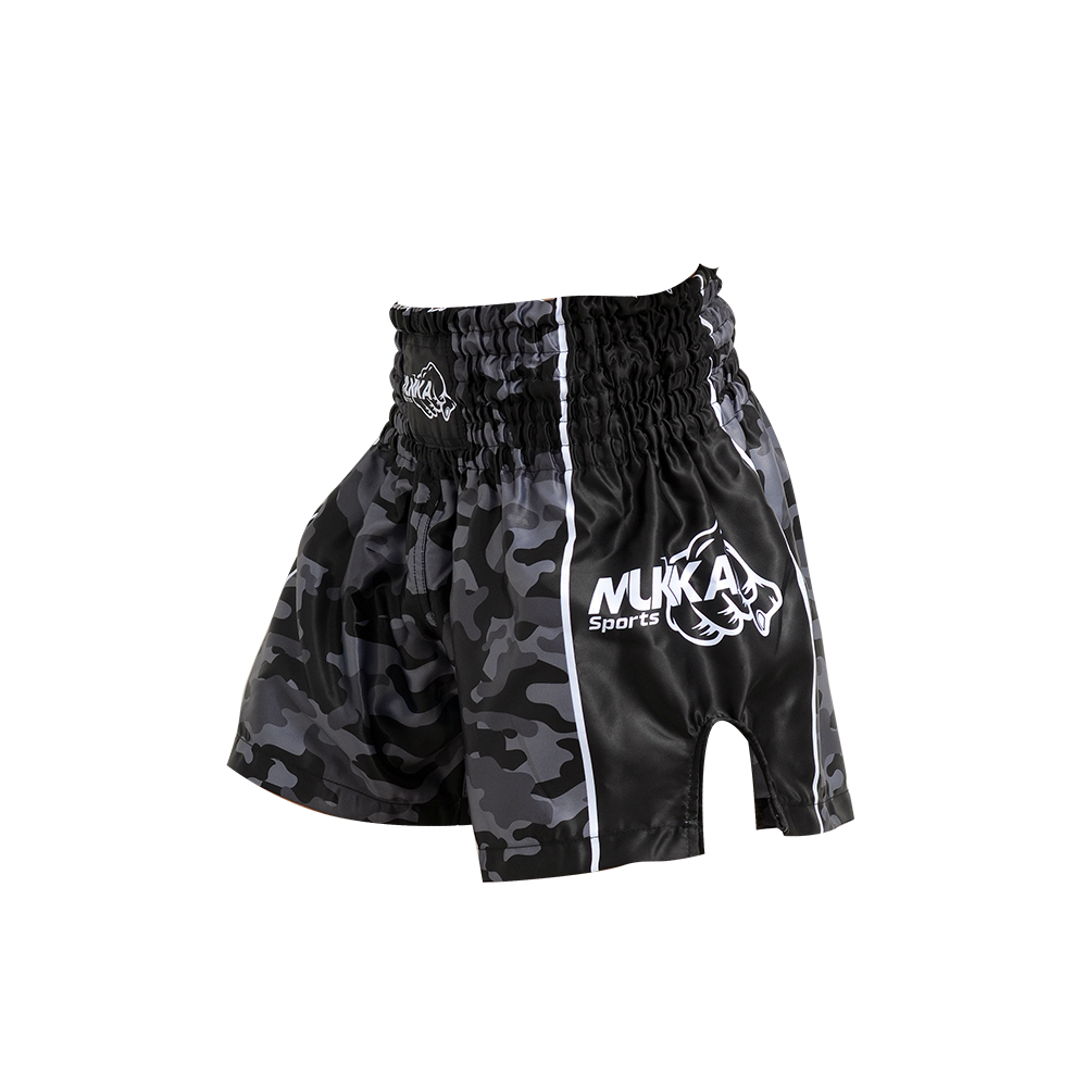 Mukka Sports MMA Grey Camo  Sublimation Shorts are design for fighters who demand comfort, durability, and performance during intense training and competition. These shorts are made with high-quality fabric and advanced sublimation printing that keeps the colors vibrant without fading or cracking.