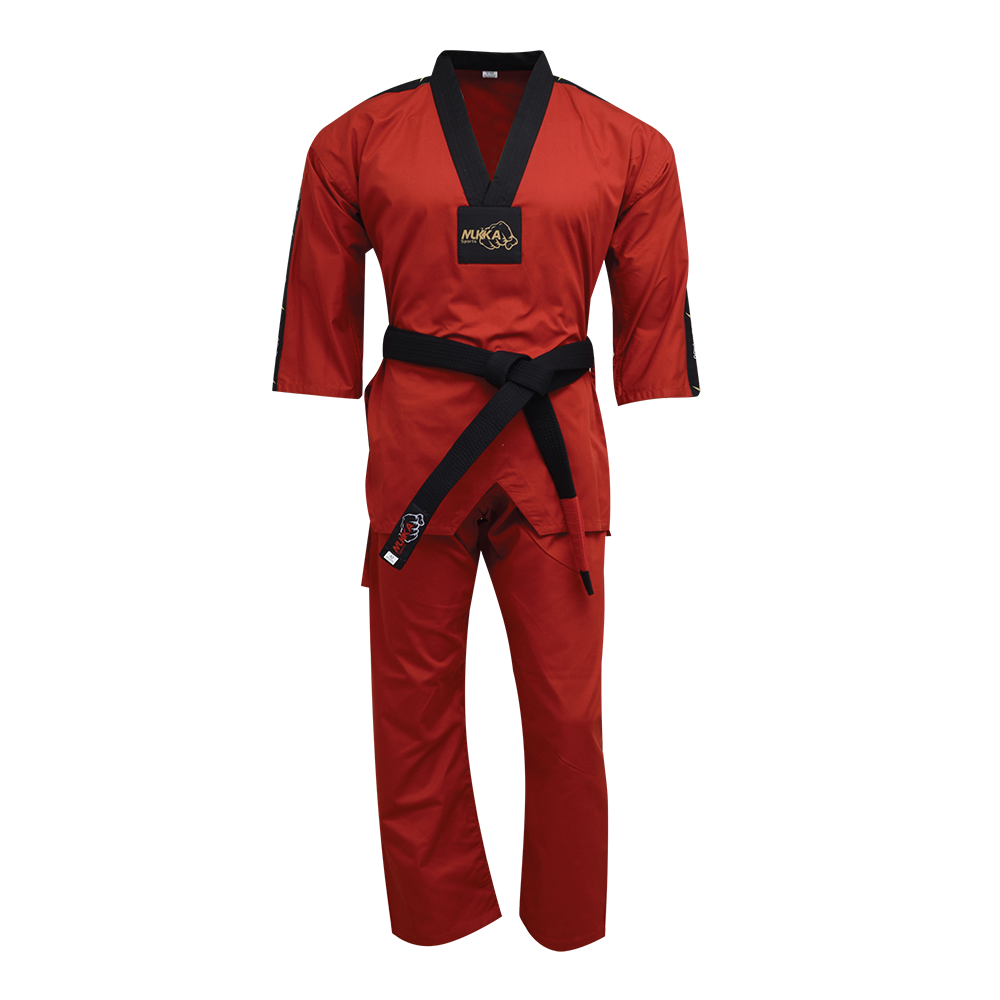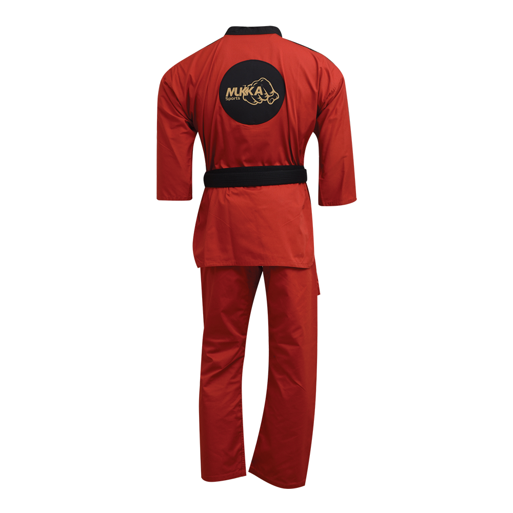 This Red Taekwondo Gi (TKD Dobok) features reinforced stitching that enhances strength and durability, making it suitable for regular training sessions and competitions. The lightweight construction helps maintain comfort during long practice hours while offering the durability required for intense martial arts performance.